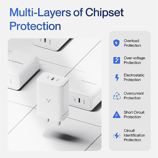 - Multi-layers of Chipset Protection: The charger comes with multi-layers of chipset protection that gives protection against short circuits, over-voltage and more.