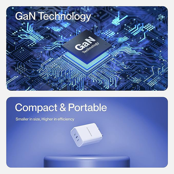 - GaN Technology: This latest technology makes this wall charger smaller in size, more efficient in performance and lower temperature in operation.