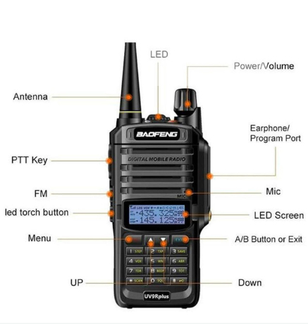 • Dual-Band Frequency Support (VHF + UHF): Operates on 136 -174 MHz and 400 – 520 MHz, allowing flexible communication across multiple channels.