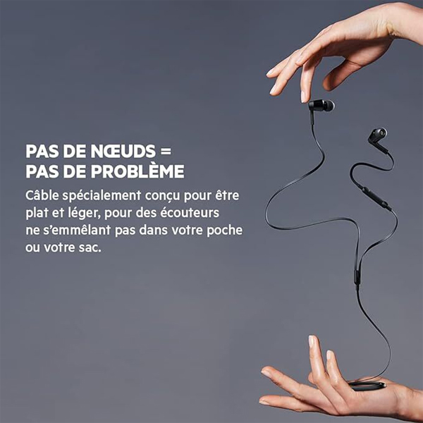 • Flat, lightweight cable keeps headphones from getting tangled in your pocket or bag