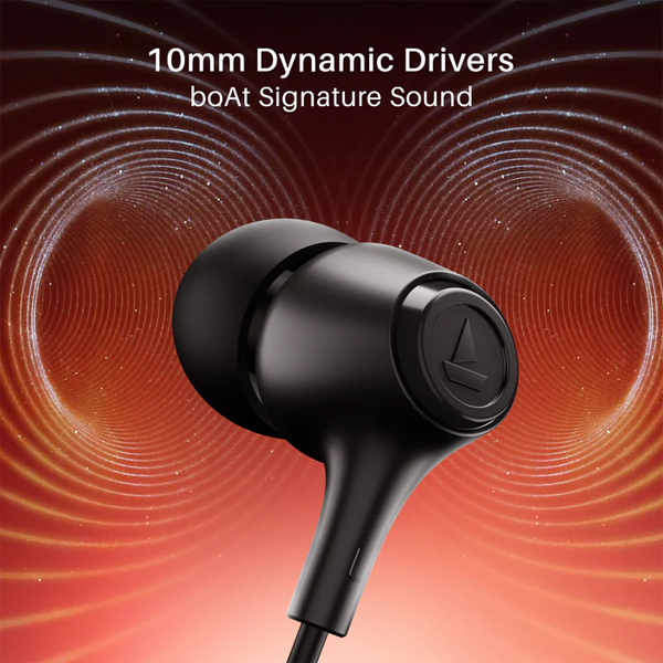 • The earphones are tuned with boAt Signature Sound, ensuring a punchy bass profile while maintaining clarity across mids and highs.