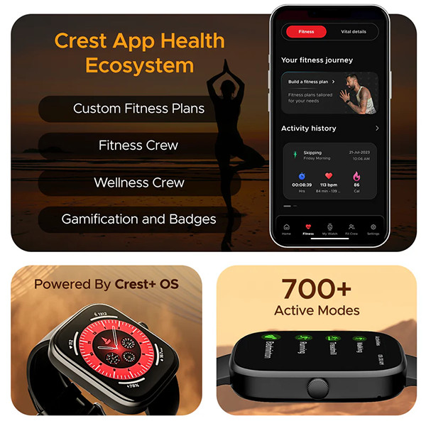 • 700+ Activity / Sports Modes: Over 700 built-in modes like running, cycling, yoga, etc. for comprehensive fitness tracking.