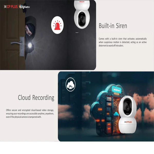 • Built-in Siren Alarm: Suspicious activity is detected