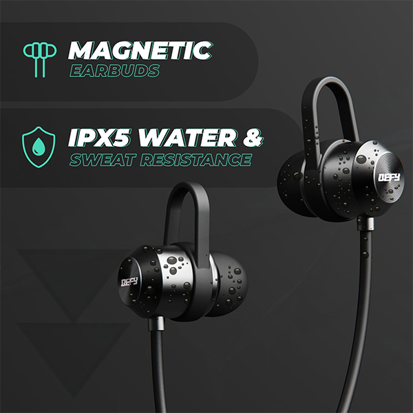 The IPX5 rating protects the neckband from sweat and light splashes, making it ideal for workouts, running, gym sessions, and outdoor activities.Magnetic Earbuds