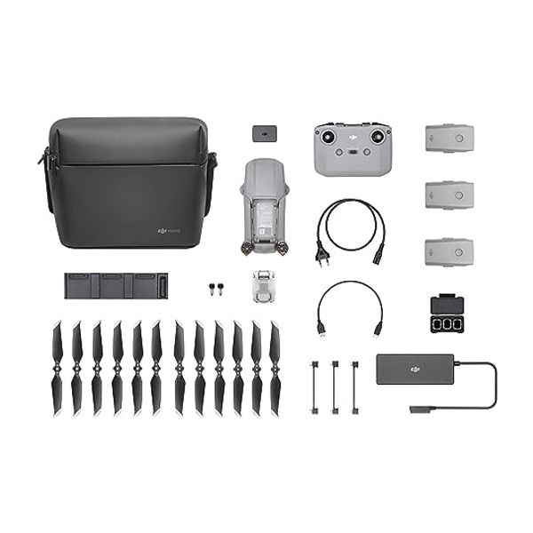【WHAT YOU GET】: Mavic Air 2 Aircraft, Remote Controller, 3x Intelligent Flight Battery, 6x Low-Noise Propellers (Pair), RC Cables (USB Type-C, Lightning, Standard Micro-USB), Control Stick, Gimbal Protector, Battery Charger, Battery Charging Hub, Battery to Power Bank Adapter, Shoulder Bag, ND Filters Set (ND16/64/256), Manuals, AC Power Cable, Type-C Cable.