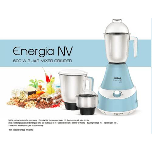 Havells Energia 600 Watt Mixer Grinder with 3 Jar Havells Energia 600 Watt Mixer Grinder with 3 Jar