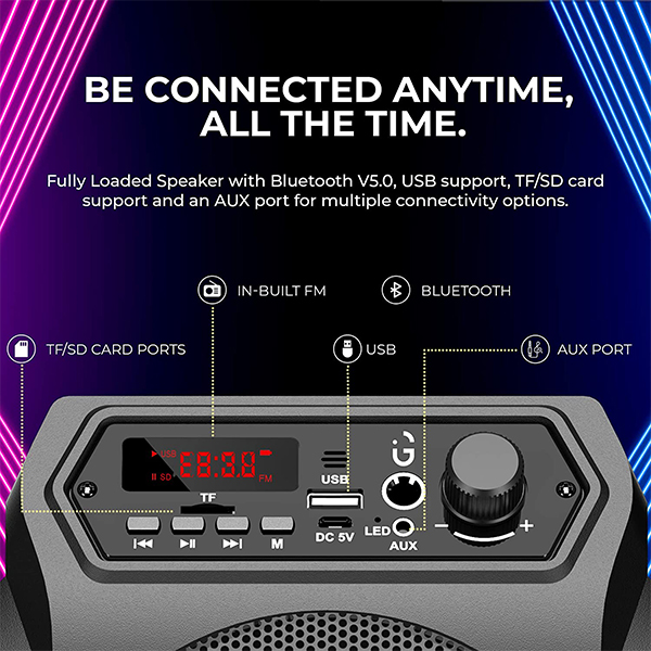 • [MULTI-CHANNEL CONNECTIVITY]: Dynamo can be connected to any Bluetooth-enabled device. It supports easy connection via USB, SD/TF Card, and AUX input. Plus, it supports the TWS function.