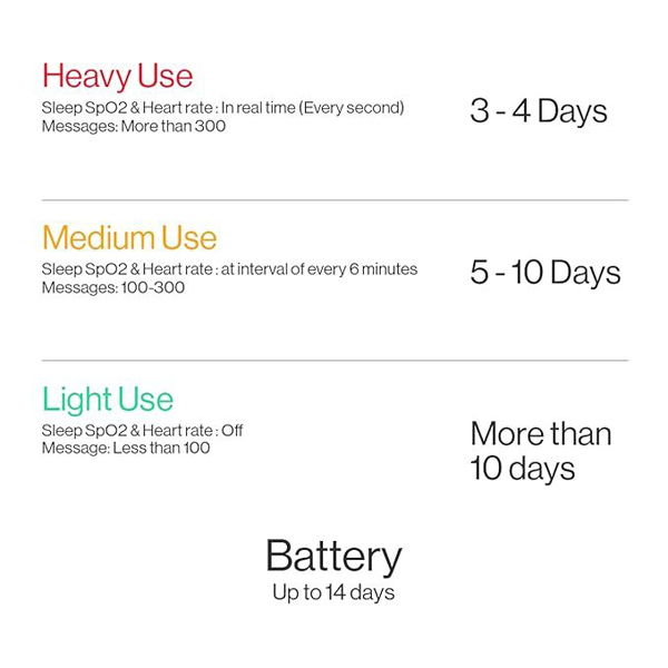 Battery life- Up to 14 days