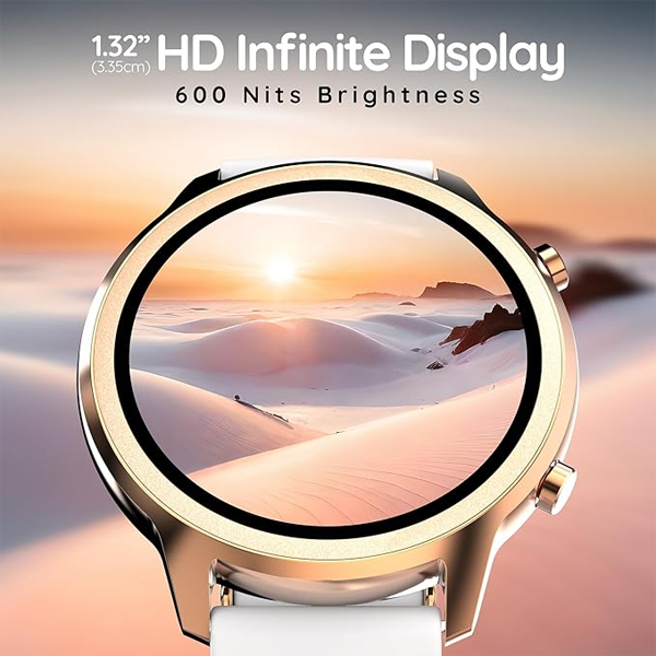 • Display & Design: Large 1.32″ vibrant IPS touchscreen -offers bright visuals and easy touch navigation for all features. High resolution (around 360 × 360 pixels) gives crisp, detailed graphics for watch faces, workouts, and menus. Stylish round dial and quality build – combines a metal alloy case with comfortable straps (silicone or leather options), perfect for both casual and formal wear .