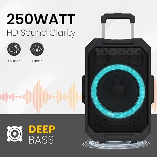• 250W Powerhouse : Pump up your party with the Portronics party speaker’s booming 250W HD sound that brings your music and movies to life. Experience crystal clear high bass and sound with this party speaker
