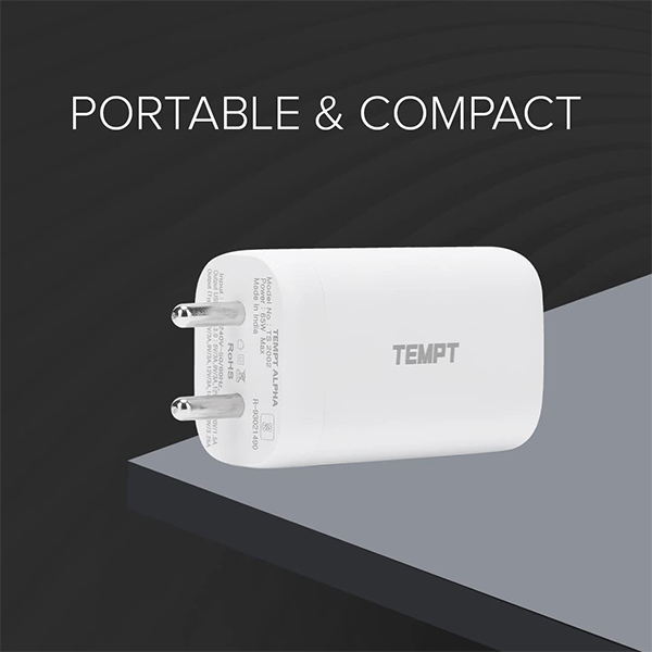 • Adaptor with wide compatibility and simultaneous charging- Charge simultaneously on multiple devices with QC 3.0 and two PD Type C output ports on the Tempt Alpha multiport fast charger with GaN technology. [ Power distribution USB-30 watts and 65 watts on both Type C ports when used separately. When used simultaneously USB-7.5; Type C- 7.5 watts and on another type C- 45 watt; when used one USB and one Type C power distribution: USB-18 watt and Type C-45 watts]
