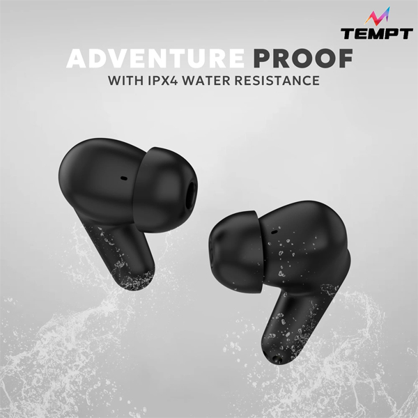 • Built for Active Lifestyles- These earpods wireless are designed to complement your dynamic routine. With an IPX4 water-resistant rating, these Bluetooth earphones are your perfect companion during intense workouts, runs, or even sudden drizzles, ensuring your music keeps pace with your energetic lifestyle.Tempt Wave True Wireless EarbudsTempt Wave True Wireless Earbuds