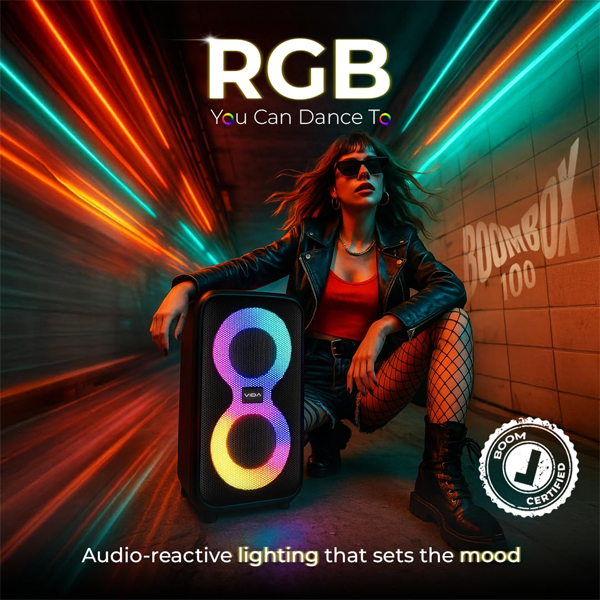- Party-Ready RGB Lighting: Built-in vivid RGB LED lights sync with your music, creating dynamic light shows that enhance the party atmosphere.