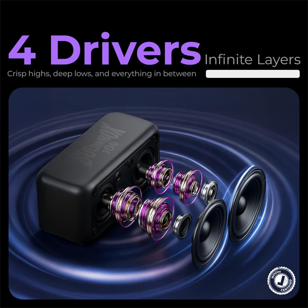 - Four Dynamic Speakers: Equipped with four drivers that work together to produce immersive, room-filling stereo sound.