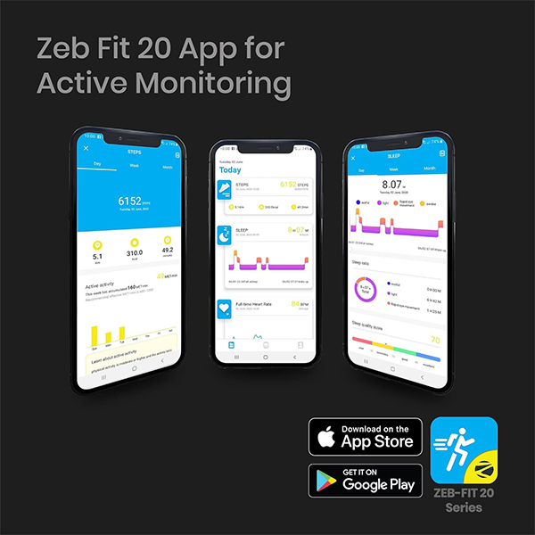 • Control: Capacitive Touch Screen & 1 Button on the Right Side; Works with Android & iOS Phone with dedicated ZEB FIT20 series App available on Play Store (Android Phone) and App Store (iOS / iPhone); Battery: 170 mAh, 30Days Standby